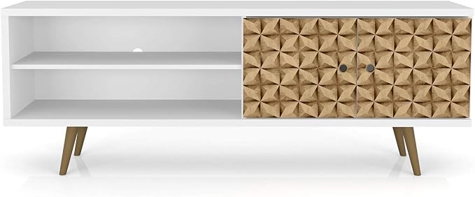 Manhattan Comfort Liberty Mid Century Modern TV Stand for Televisions up to 60 Inches, Bedroom and Living Room Entertainment Center with Storage, Shelves, and Cabinet, 63" Wide, White/3d Print