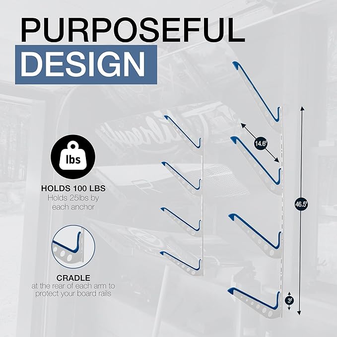 - Multi-Purpose – Also great for storing surfboards, wakeboards, fishing rods, tools, and more. Year-round storage for all your sports equipment.