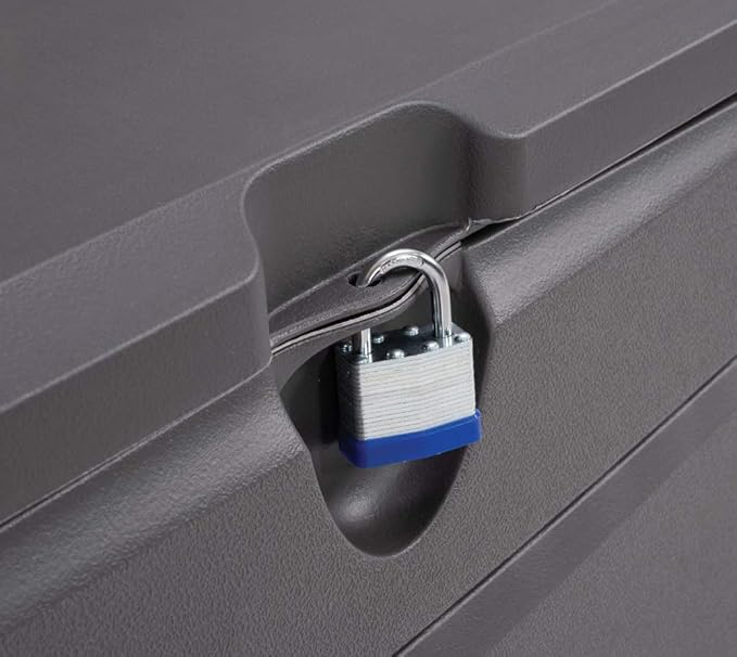 - Lockable lid: has a controlled spring hinge that opens greater than 90° - won't slam shut (padlock not included)