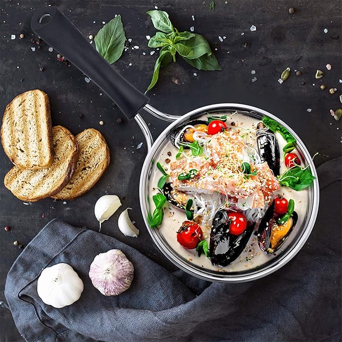 - 【Premium Material】P&P CHEF 1qt saucepan and lid are made of 18/10 stainless steel with tempered glass, Non chemical and non toxic, Will not react with cooking food and healthy for your everyday use