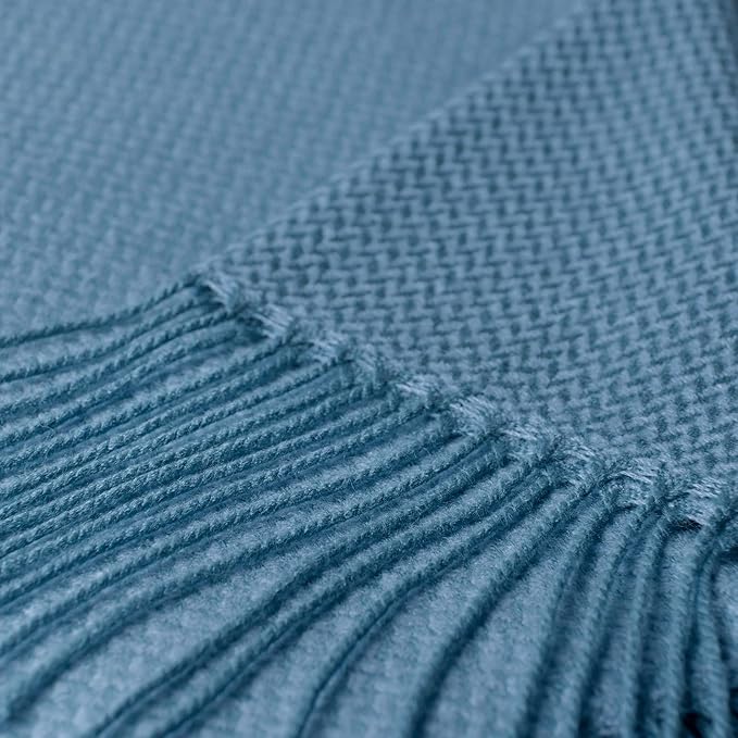 BOURINA Herringbone Two Tone Throw Blanket Faux Cashmere Fringe Soft Lightweight Cozy for Bed Couch Decorative Throws Blanket, Spa Blue, 50" x 60"