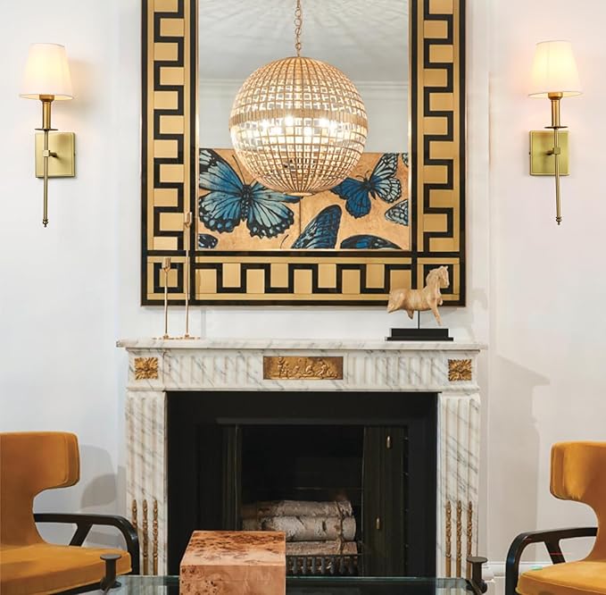 - [Widely Application] Featured a simply elegant arm and a white fabric shade in mid-century style, bathroom sconce is infusing soften lighting in all directions also is a beautiful artmestic decoration for all kinds of places, like living room, dining room, kitchen, farmhouse, reading room, hallway, stairwell, bedside, bedroom, reading room and office.