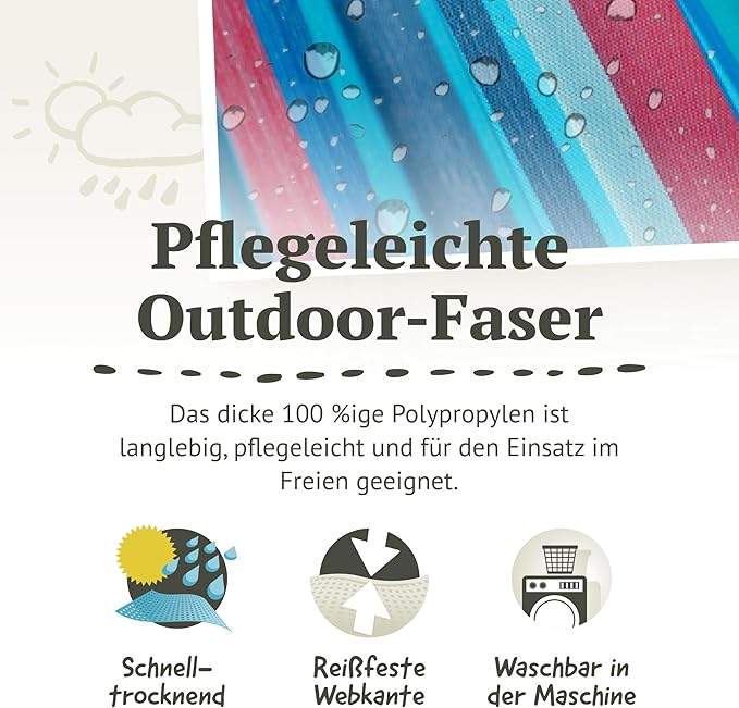 - Durable Comfort: Sturdy 100% polypropylene fabric, weather-resistant, with high count suspension cords.