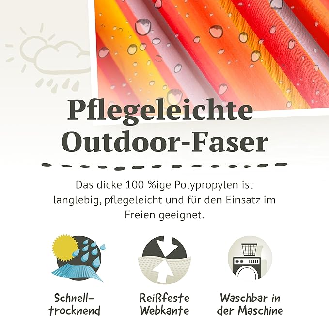 - Durable Comfort: Sturdy 100% polypropylene fabric, weather-resistant, with high count suspension cords.