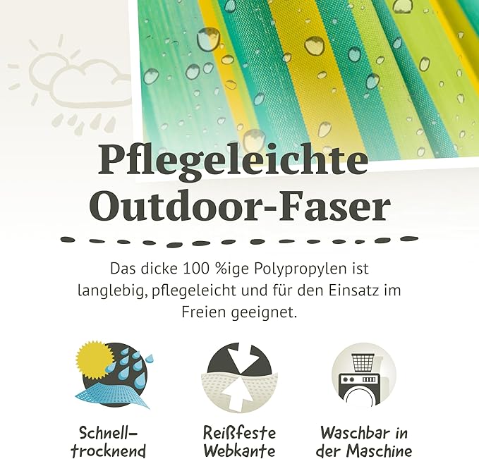 - Durable Comfort: Sturdy 100% polypropylene fabric, weather-resistant, with high count suspension cords.