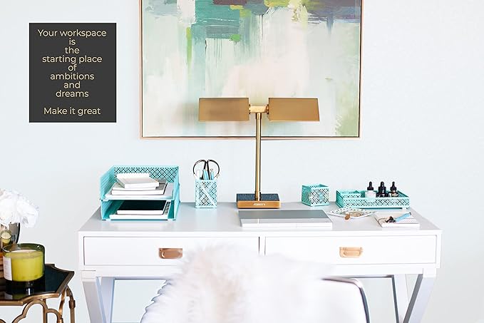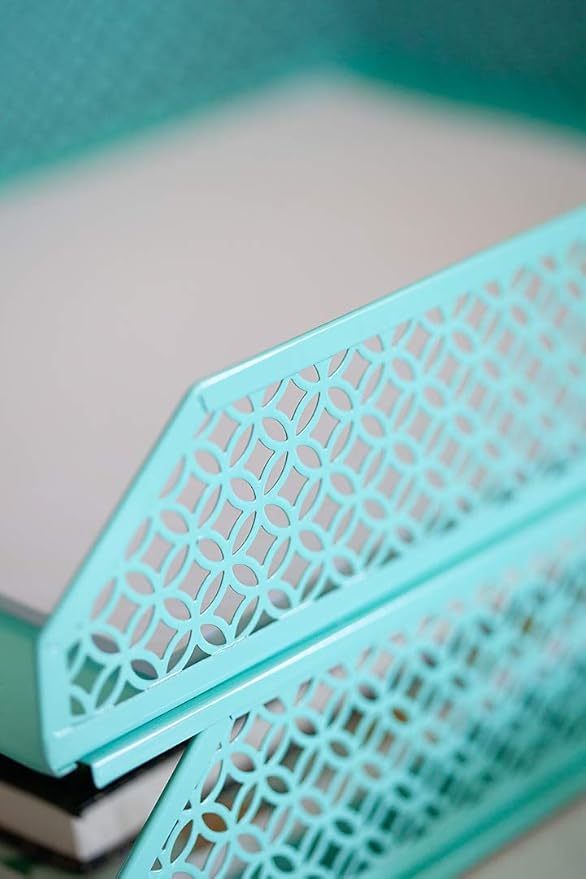 - Chic, Feminine Design – Featuring a cute, aqua metal construction, this desk file organizer adds personality to your workspace while keeping you organized with style.