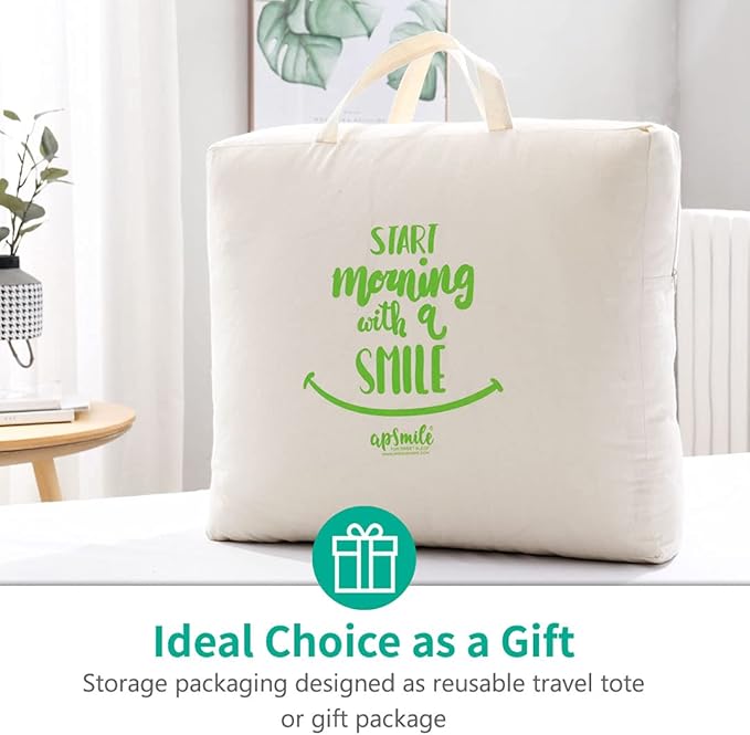 - IDEAL GIFT - The cotton packaging is designed as a reusable travel tote or gift package, an ideal gift for your loves. Recommend use it as a feather Down Fiber duvet insert with your favorite cover. Spot clean or dry clean if possible. Buy with confidence from a direct factory brand - APSMILE
