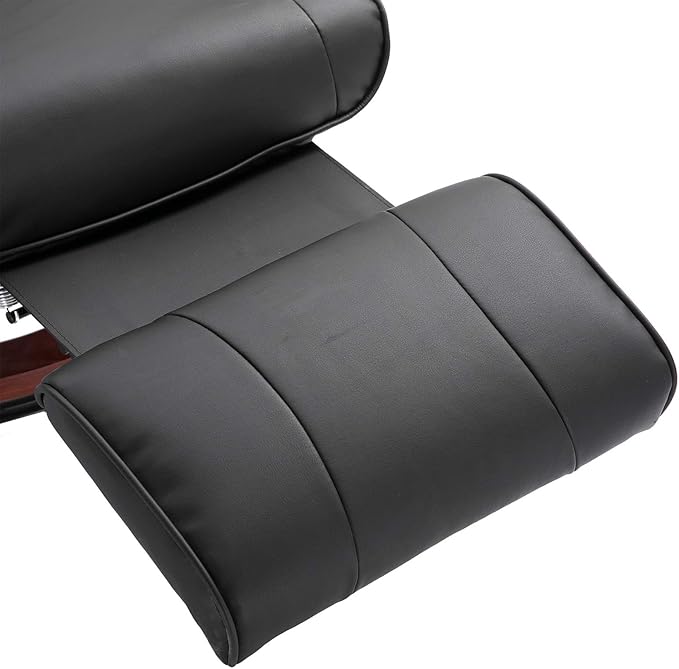 HOMCOM Faux Leather Manual Recliner, Adjustable Swivel Lounge Chair with Footrest, Armrest and Wrapped Wood Base for Living Room, Black