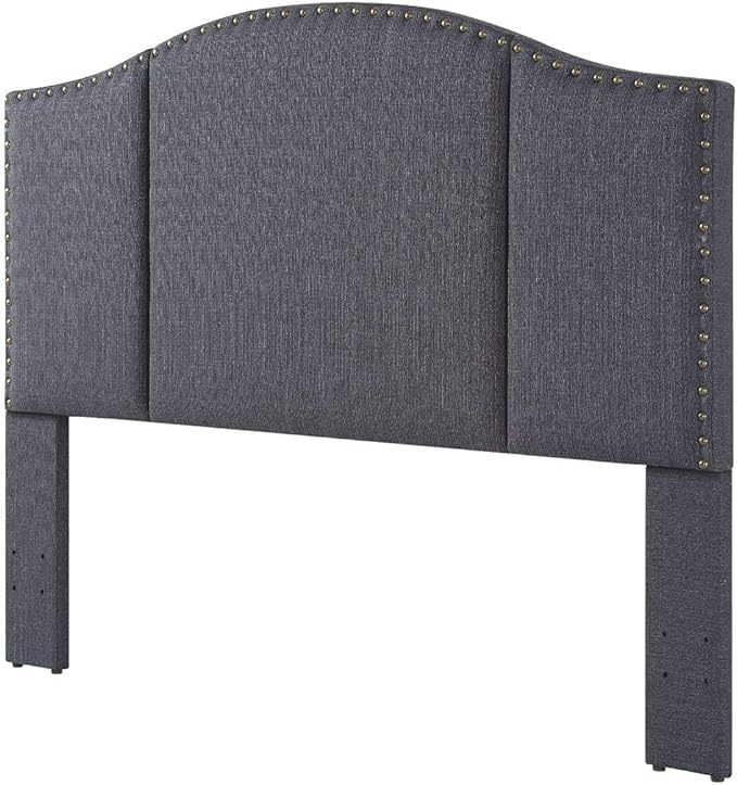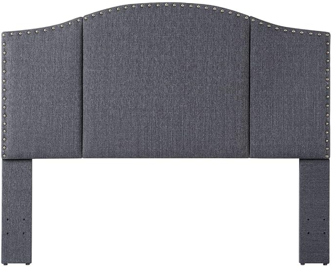 24KF Middle Century Linen Upholstered Tufted Queen Size Headboard with Antique Brass Nails Queen/Full headboard -Dark Gray