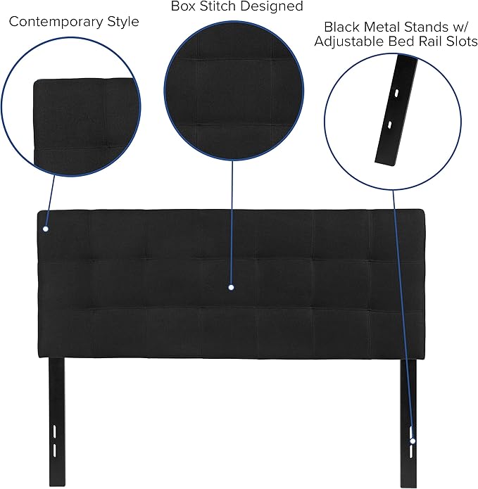 - Black fabric upholstered panel headboard, Headboard Size: 56.75"W x 3"D x 24"H