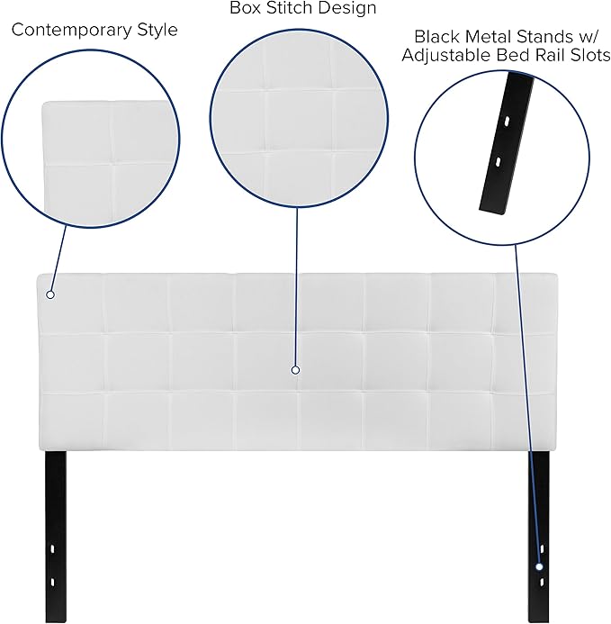 EMMA + OLIVER Quilted Tufted Upholstered Queen Size Headboard in White Fabric