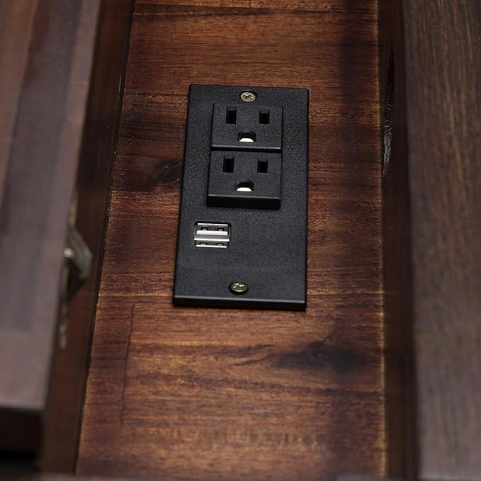 - Features a convient USB and power outlet and spacicious top surface with lift up storage for lap tops, tablets or small office supplies