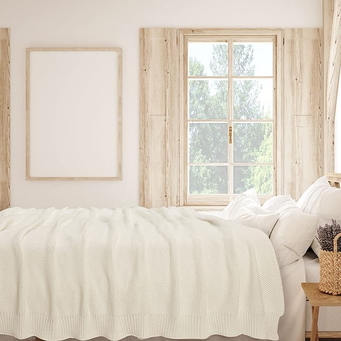 PiccoCasa 100% Cotton Knit Blanket Twin Size,Solid Lightweight Decorative Throws and Blankets,Soft Knitted Throw Blanket for Sofa Couch, Beige 60" x 78"