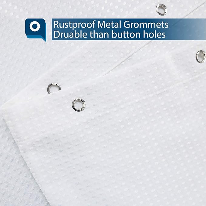 - Serve Well: Water repellent and dries quickly, ensures that your solid white waffle shower curtain remains fresh and clean. Reinforced top header, rust-resistant metal grommets and fade-resistant fabric make these as functional as they are fashionable