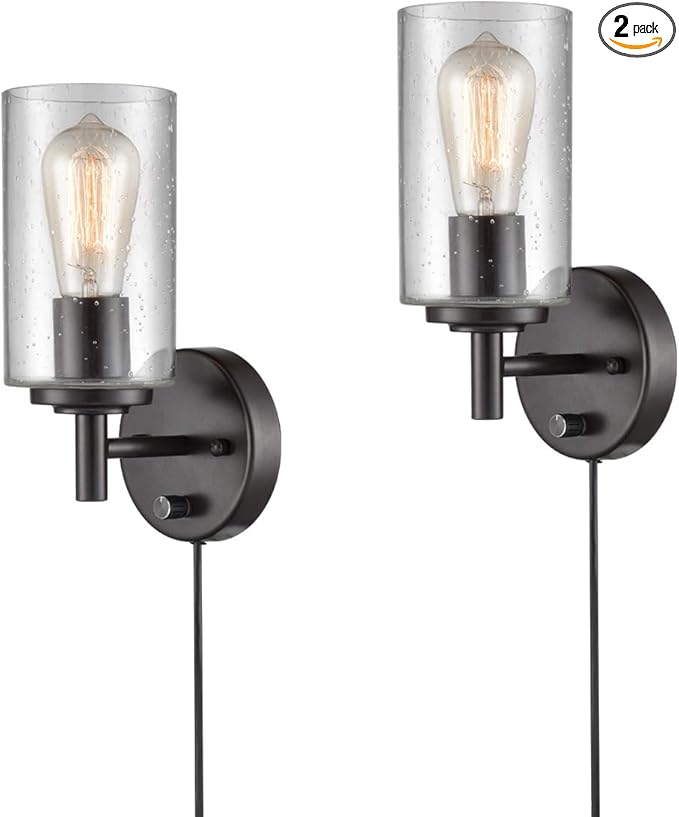 DANSEER Contemporary Oil Rubbed Bronze Bubble Glass Wall Sconces Set of Two Sconce Plug in with Switch