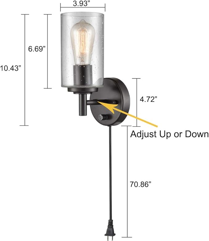 - The backplate is 4.72"high and with 5.9 ft long black plug in wire.You can adjust up/down light
