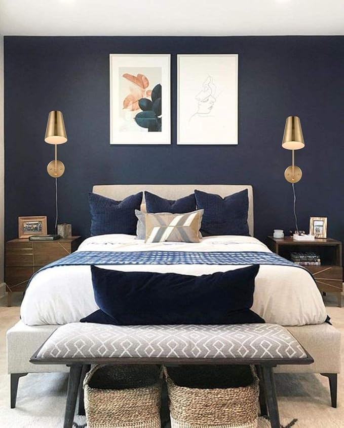 DANXU Modern Plug in Wall Sconce with Cord Set of 2 Gold Wall Light