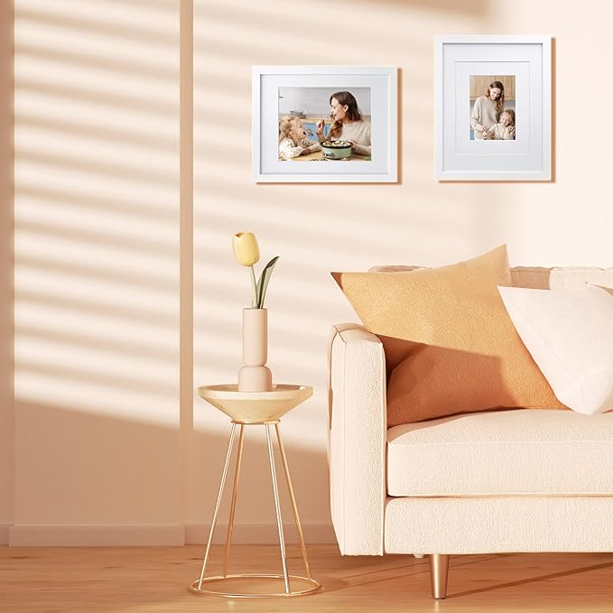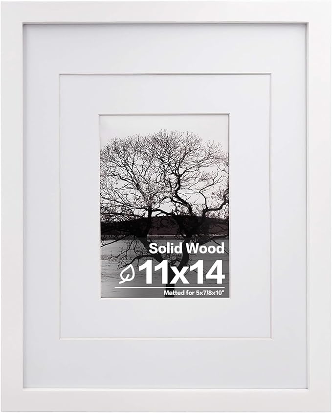Egofine 11x14 Picture Frame White - Photo Frame Made of Solid Wood Covered by Plexiglass for Table Top Display Pictures 5x7/8x10 with Mat or 11x14 Without Mat - with Wall Mounting Hardware