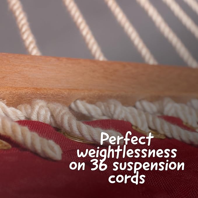 - UNMATCHED DURABILITY & SUPPORT: With 36 suspension cords, this quilted hammock offers exceptional weight distribution and support. The heavy duty 2 person hammock is built to endure and support, making it a reliable choice for your backyard.