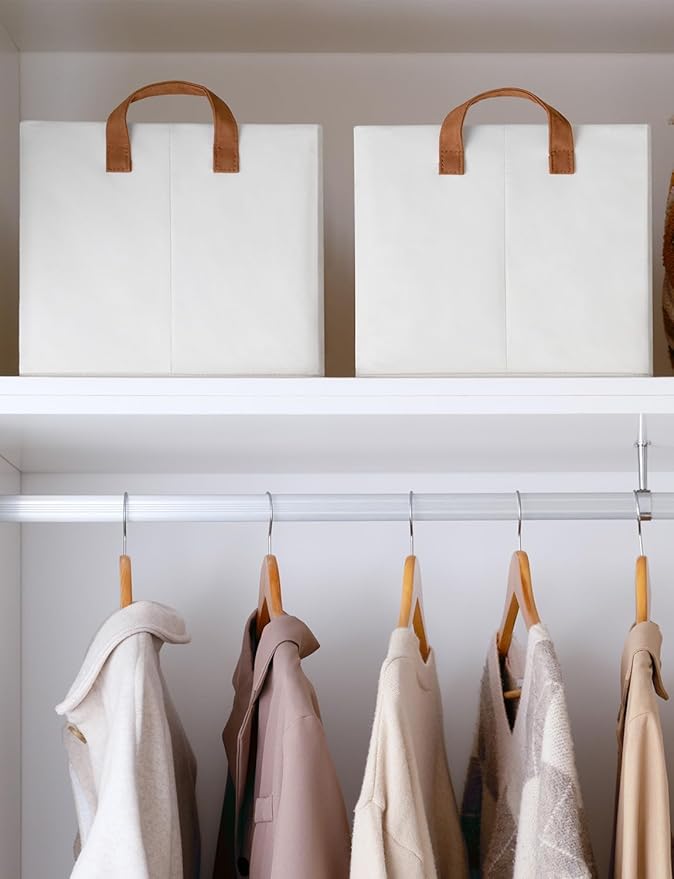 StorageWorks Storage Bins, Fabric Storage Bins for Shelves, Storage Baskets with Metal Frame, Closet Baskets and Bins with Handles, Beige, 2-Pack