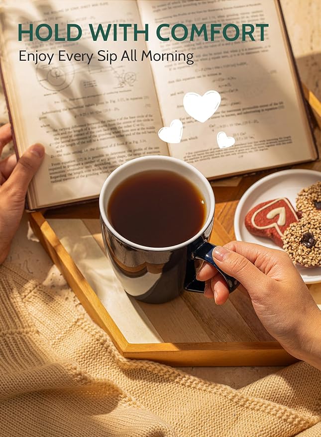 - ENJOY YOUR DRINK WITH EASE: Our coffee mugs redefine comfort with a spacious design and a large handle, ensuring a cozy grip. Savor the enhanced taste of your tea or coffee as the mug sits comfortably in your hands. Crafted with ergonomic precision, our mugs offer a stylish and secure grip, the wide mouth is perfect for indulging in hot lattes, complemented by a large handle that holds 16 ounces of goodness. Choose ease and style for every sip.