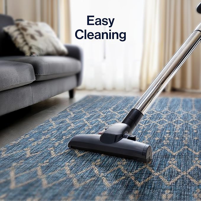 - STAIN-RESISTANT AND PET-FRIENDLY: This rug is made from synthetic fibers that resist UV fading; The pet-friendly low-pile construction won’t accumulate dirt, and spills clean up easily; It’s been machine-woven so the rug fibers will stay put
