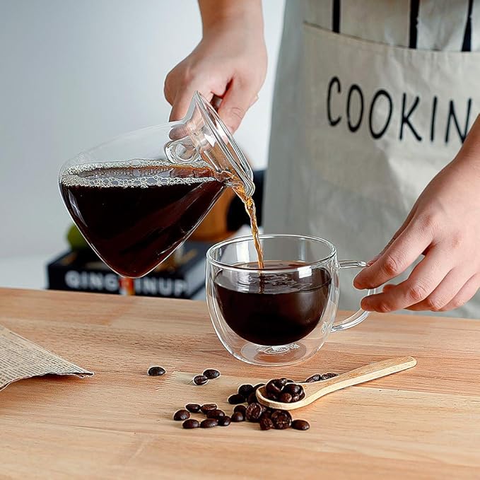 - KEEPS YOUR COFFEE HOT FOR LONGER:Double walled,hand blown glass insulation keeps your coffee hot and your hand cool.No sweat! Also works great for your favorite icy cold drink.