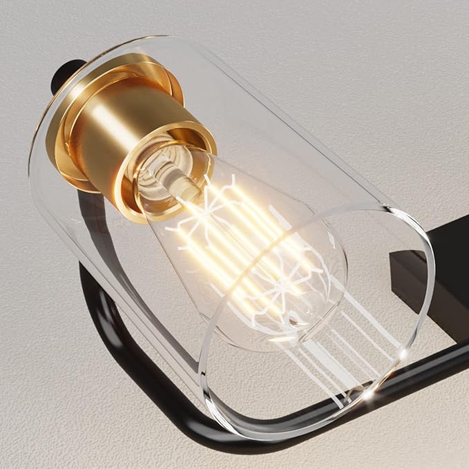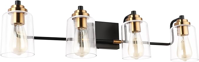 - 1.【EASY TO INSTALL】15-Minutes Easy Installation, hardwired, attach the globe to the light only, USA standard back plate. This 4-light black gold bathroom light fixture directly connects to the reserved wire and then mounts to the wall.