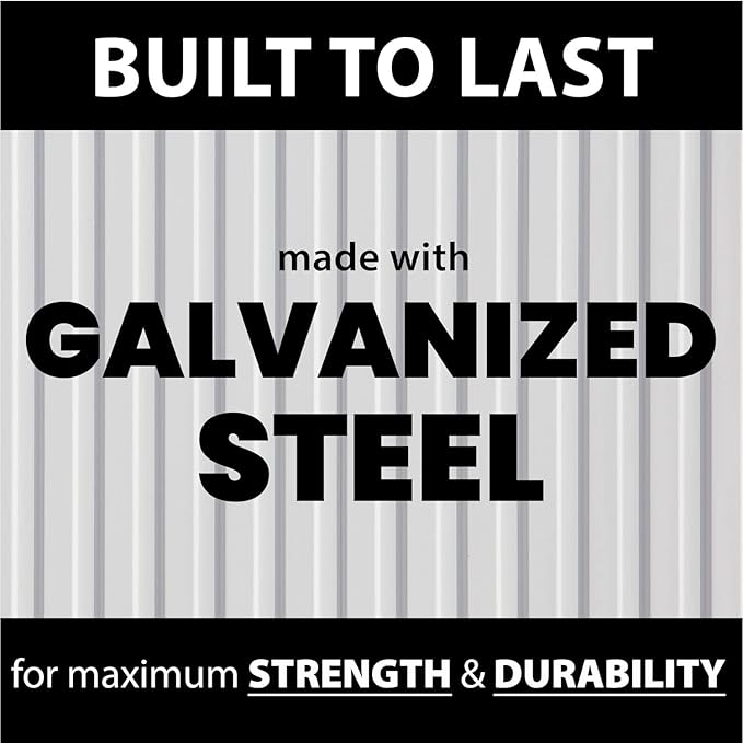 - Strong and Durable Storage Shed: This outdoor storage shed is made of galvanized steel built to last outside year round; The shed is rust, rot, fire, and water resistant for added durability
