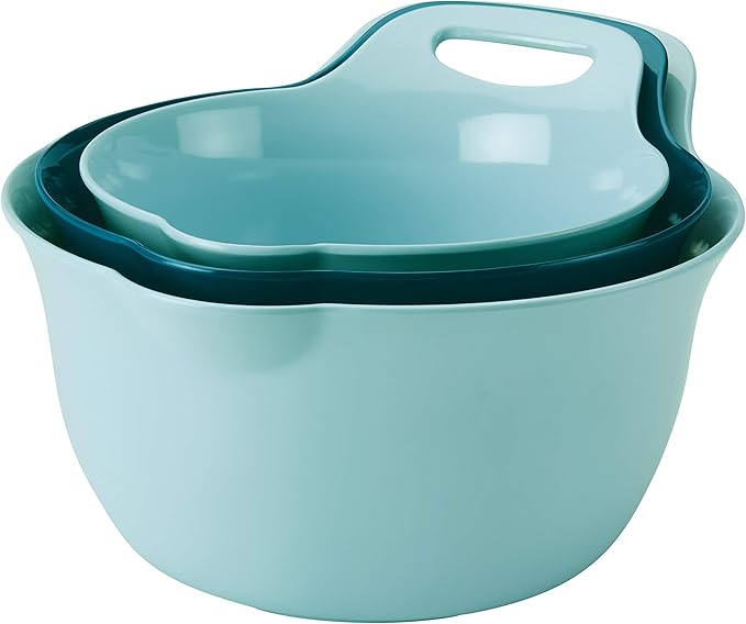 - NESTING BOWLS: Mixing bowls set features built-in spouts and handles and nest conveniently together for space-saving storage