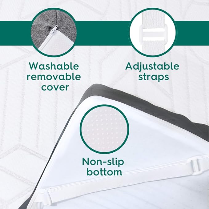 - MACHINE WASHABLE & STAYS IN PLACE: Includes a soft, cooling, removable cover that’s machine washable for easy dorm care. Adjustable straps and a non-slip bottom provide reliable comfort, easy removal and cleaning, long-lasting freshness, and secure fit.