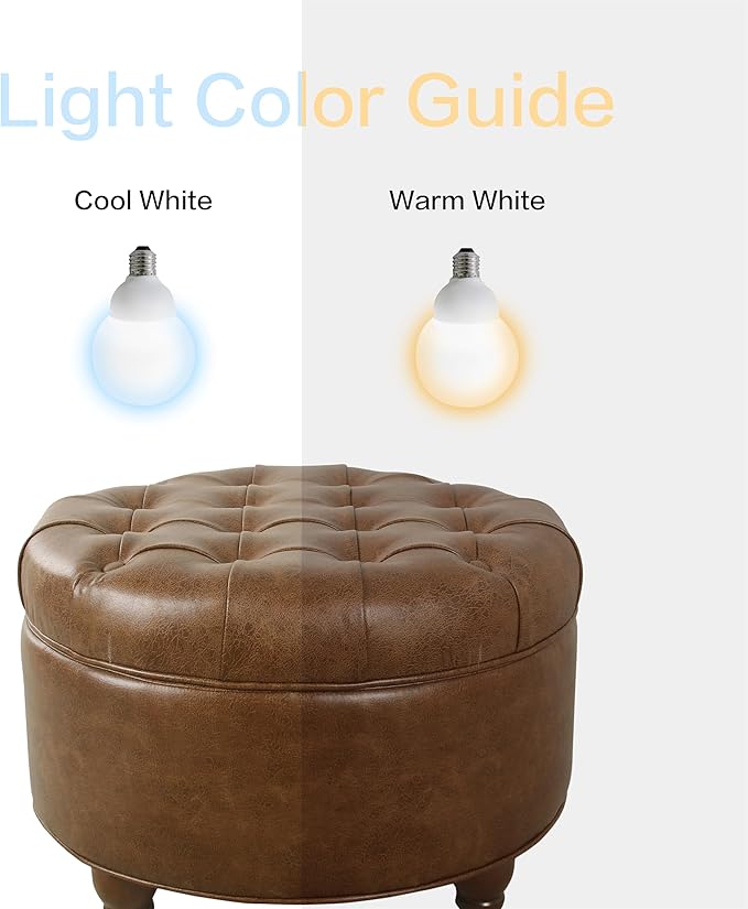 - STORAGE OTTOMAN: With it's rich Faux Leather our Round Ottoman with Storage can be used as a ottoman coffee table | Perfectly completed with tapered wood legs in a dark walnut finish along with button tufting on top