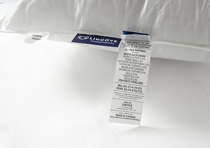 Lincove Cloud Natural Canadian Down and Waterfowl Feather Pillow, White Luxury Sleeping Pillow - 625 Fill Power, 500 Thread Count Cotton Shell, Made in Canada, Standard - Soft, 1 Pack