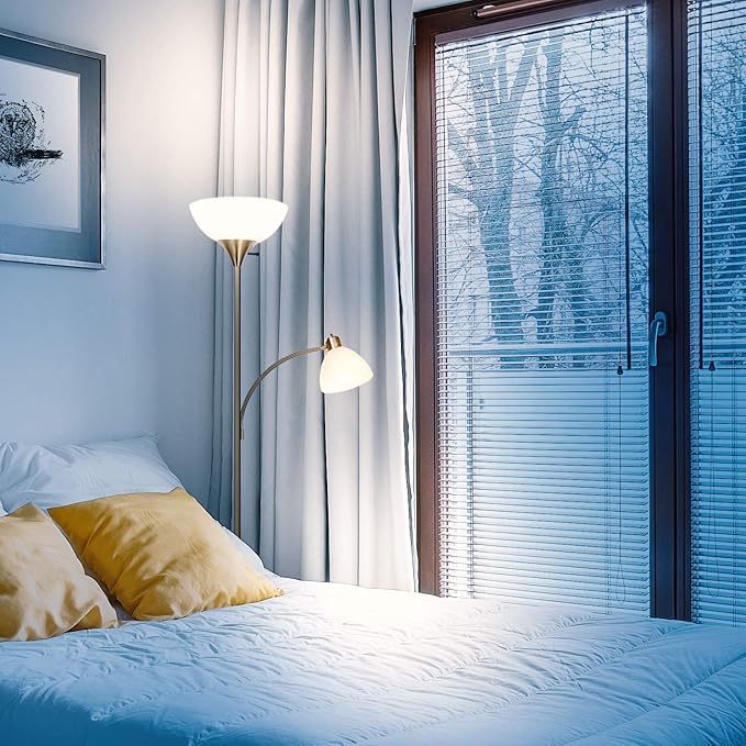 - Super Bright LED Lighting: This Brightech floor lamp's built-in LED light with 2400 lumens is enough to light up your living room. Powered by 2 LED bulbs, 16W / 1600 lumens, and 9.5W / 800 lumens, the floor lamp generates 3000K warm white colors. Whether you want to read, write, or simply relax, the standing lamp provides ample illumination without straining the eyes, an ideal floor lamp for your living room and bedroom.