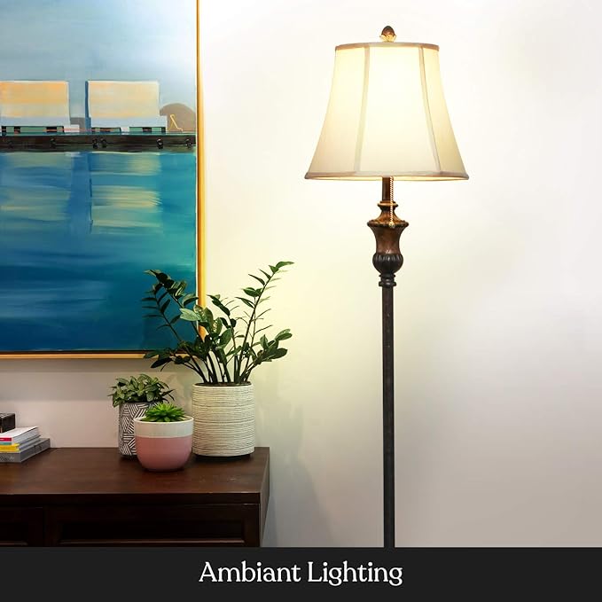 - Decorative Floor Lamp for Any Living Room Decor: The Brightech Sophia LED Floor Lamp will amaze you with its beautiful design and become an immediate conversation piece for guests. With an elegantly detailed pole and base, a warm bronze finish, and a lampshade in tan, this standing lamp will fit within art deco, contemporary, modern, vintage, mid-century modern, and other decor schemes. Provide gentle, relaxing light in your office, bedroom, or living room with this Sophia floor lamp.