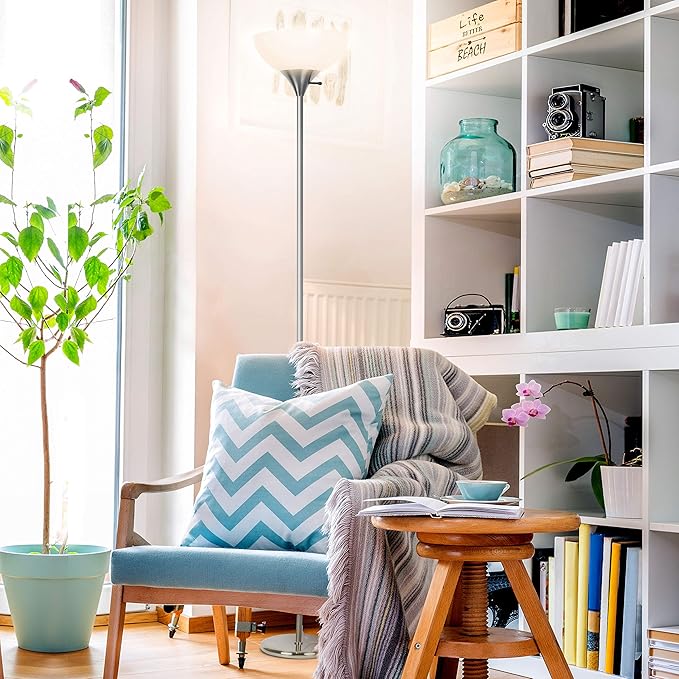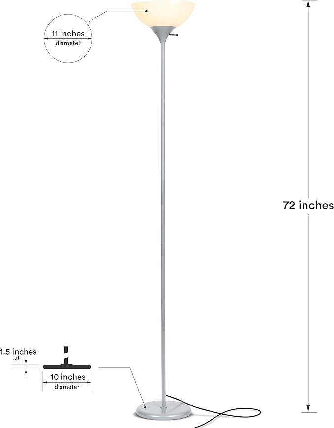 - Super Bright LED Lighting: The Brightech Sky Dome floor lamp creates an impressive 1,600 lumens of 3,000K white light to brighten any room. The tall lamp’s white plastic dome shade diffuses light so it won’t shine directly into your eyes. Drawing only 16 watts on maximum brightness, the tall standing lamp shines bright and stays sturdy through a high-quality construction. It acts as an excellent alternative to harsh overhead lights, with a light 3,000K warm white color for bedrooms and offices.