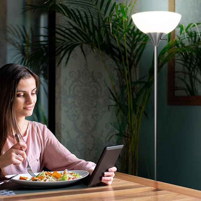Brightech Sky Dome Dimmable LED Floor Lamp, Torchiere Floor Lamp for Living Rooms & Offices – Tall Standing Lamp for Reading & Hobbies – Platinum Silver