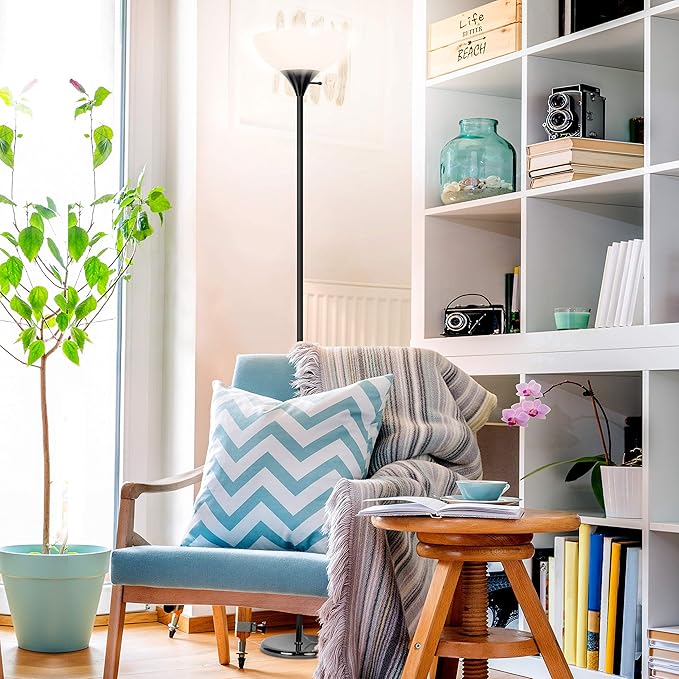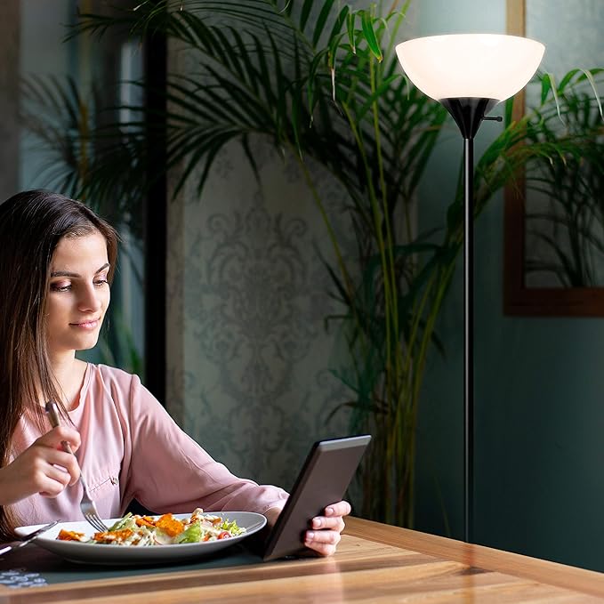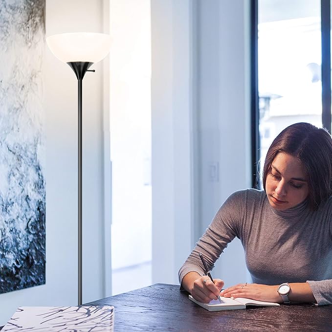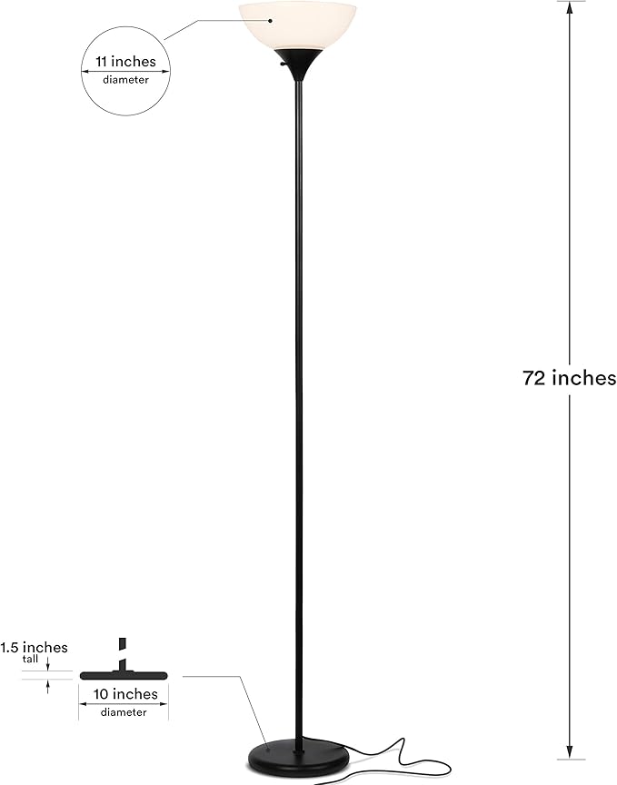 - Super Bright LED Lighting: The Brightech Sky Dome floor lamp creates an impressive 1,600 lumens of 3,000K white light to brighten any room. The tall lamp’s white plastic dome shade diffuses light so it won’t shine directly into your eyes. Drawing only 16 watts on maximum brightness, the tall standing lamp shines bright and stays sturdy through a high-quality construction. It acts as an excellent alternative to harsh overhead lights, with a light 3,000K warm white color for bedrooms and offices.