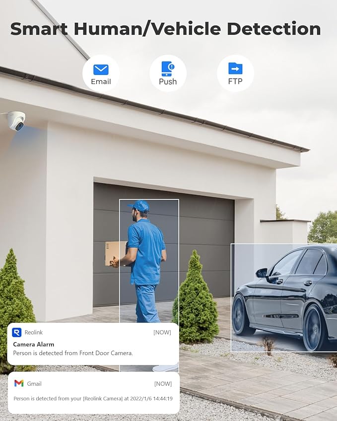 - Human/Vehicle Detection: This IP camera is equipped with on-device detection technology to identify human and vehicles from other objects. With its accurate detection, you can keep a sharper eye on the true threats and release your mind from the unnecessary alerts.
