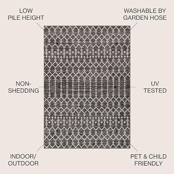 JONATHAN Y Moroccan Geometric Indoor Outdoor Area Rug 9X12 Black/Gray, Ourika Textured Weave for Backyard, Patio, Porch, Easy-Cleaning, High Traffic, Pet-Friendly, Non-Shedding (SMB108F-9)