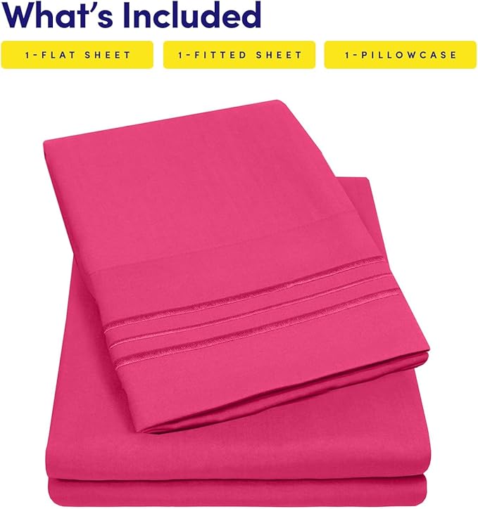 1500 Supreme Collection Twin XL Sheet Sets Fuschia - 3 Piece Bed Sheets and Pillowcase Set for Twin XL Mattress - Extra Soft, Elastic Corner Straps, Deep Pocket Sheets, Twin XL Fuschia
