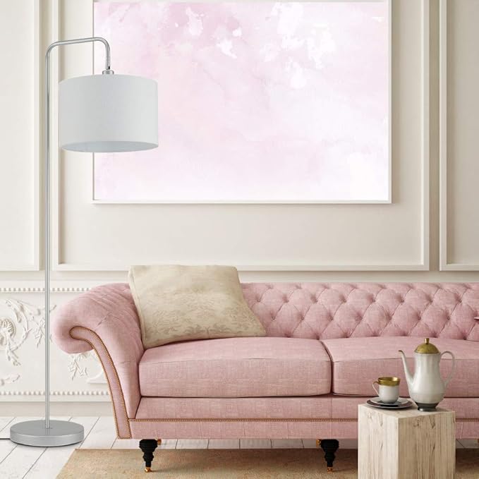 - STATEMENT PIECE: a 58-inch height, a sleek silver finish and white fabric shade creates a statement piece perfect for any room in your home