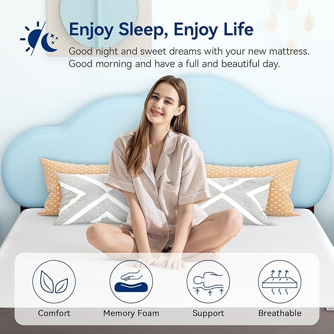 - 💕Pressure-Relieving: Cooling gel-infused memory foam conforms to our body curves perfectly, distributes the body weight evenly and reduces pressure points on our shoulders, spine and hips. This 6 inch twin mattress soft plush feeling allows you to relax from head to toe after a long and busy day of work and study.