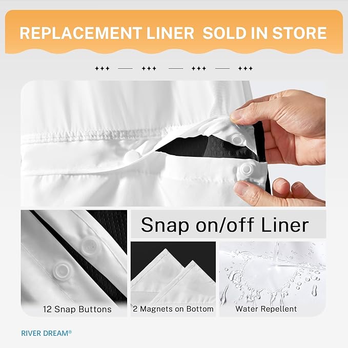 - Package Included: 1 Shower curtain and 1 fabric snap-on replacement Liner