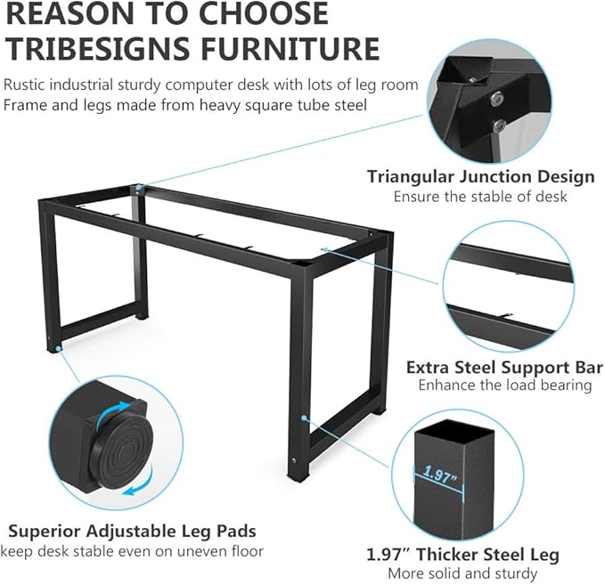 - [SUPER STURDY ] – desktop made of 0.98" thicker laminated MDF, waterproof and ant scratch, very easy to clean, computer frame is made of heavy duty powder coated steel which ensures stability and durability, 1.57" by 1.57" width strong enough to support heavy duty parcels