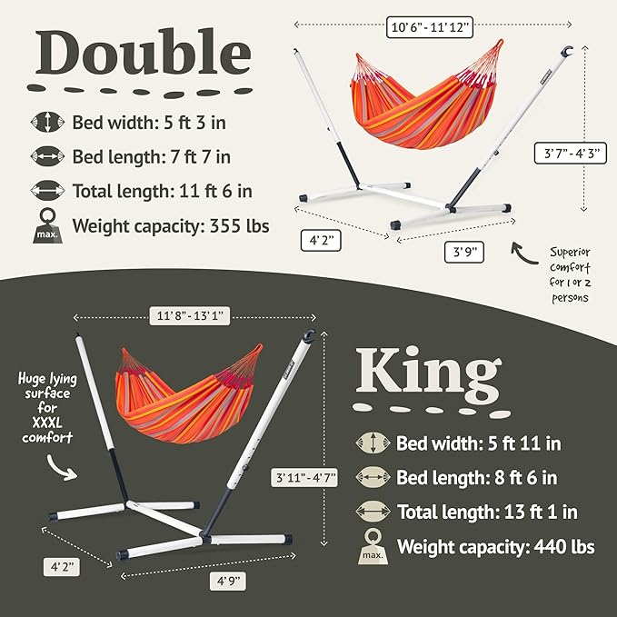 - OPTIMAL SUPPORT & DURABILITY: Enjoy ultimate comfort with 92 suspension cords that provide optimal weight distribution, enhancing durability. Ideal for families, couples, or individuals, our free standing hammock offers you a relaxing haven.