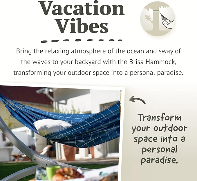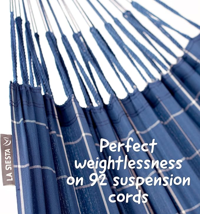 LA SIESTA® - XL King Brisa Classic Hammock & Nautico Steel Stand - Weather & Tear Resistant - Portable, Family Hammock w/Stand - Balcony Porch Garden Outdoor Indoor Hammock - Max 440 Lbs, Marine