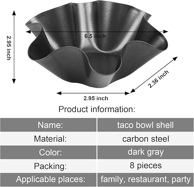 - 【ENVIRONMENTALLY FRIENDLY AND DURABLE】 RUVINCE taco bowl shell maker uses food grade carbon steel, non-stick coating, environmentally friendly, PFOA-free, PTFE-free, and PTOS-free.