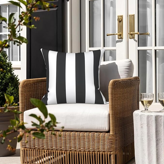 LVTXIII Indoor Outdoor Pillow Covers, Covers ONLY Patio Accent Square Toss Pillow Cushion Case 18" x 18" Pack of 2 for Sofa Couch Patio Furniture Decoration – Cabana Black