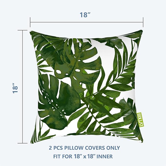 LVTXIII Outdoor Accent Patio Toss Pillow Covers, Covers ONLY Tropical Throw Pillow Case Sham, Square Cushion Covers for Indoor Outdoor Use 2 Pack, 18" x18" – Palm Green